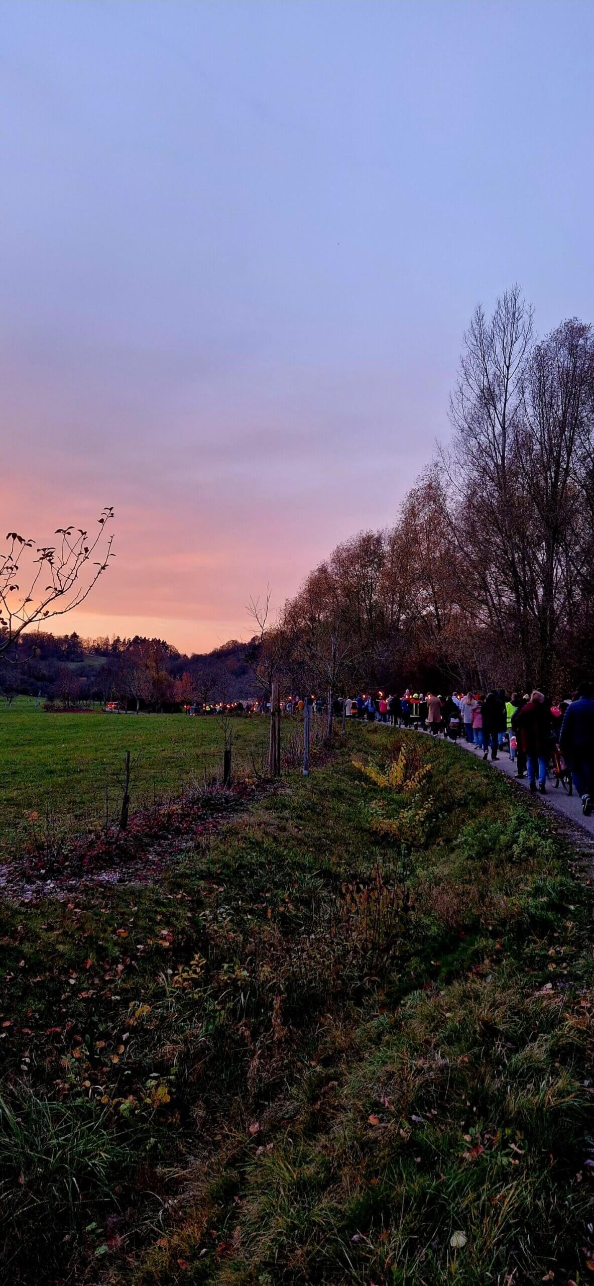 Die Kindertagesstätte Arche Noah wagte in diesem Jahr eine neue Form des Martinsfestes. Erstmalig trafen sich die Familien bereits um 16:30 Uhr am Minigolfplatz, um das Fest in einem geänderten Rahmen zu erleben. Nach einer herzlichen Begrüßung startete der Umzug früher als gewohnt und führte bei milden Temperaturen durch das stimmungsvolle Landschaftsschutzgebiet „Im Gründlein“. Voller Stolz trugen die Kinder ihre farbenfrohen Laternen, begleitet von Erwachsenen mit Fackeln, sodass sich der Lichterzug in eindrucksvoller Weise durch die romantische Herbstlandschaft schlängelte.